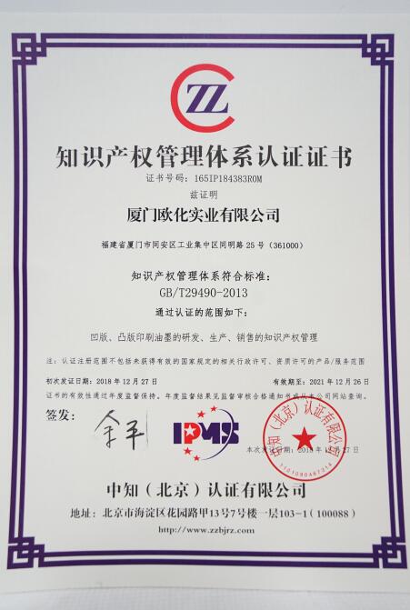 近日,我司獲證“知識(shí)產(chǎn)權(quán)管理體系認(rèn)證”,通過(guò)認(rèn)證的范圍為凹版、凸版印刷油墨的研發(fā)、生產(chǎn)、銷售的知識(shí)產(chǎn)權(quán)管理。