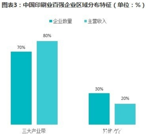 從市場布局上看,印刷行業(yè)企業(yè)呈現(xiàn)出明顯的地域性特征,以廣東為中心的珠三角、以上海和江浙為中心的長三角和以京津為中心的環(huán)渤海三大地區(qū)形成了三大產(chǎn)業(yè)帶。上述三大區(qū)域亦是我國經(jīng)濟較具活力的區(qū)域,印刷出版、食品飲料、日化等行業(yè)較為發(fā)達。另外,閩南地區(qū)、膠東半島一帶作為電子、輕工業(yè)的聚集地,亦聚集了較多的包裝印刷企業(yè)。