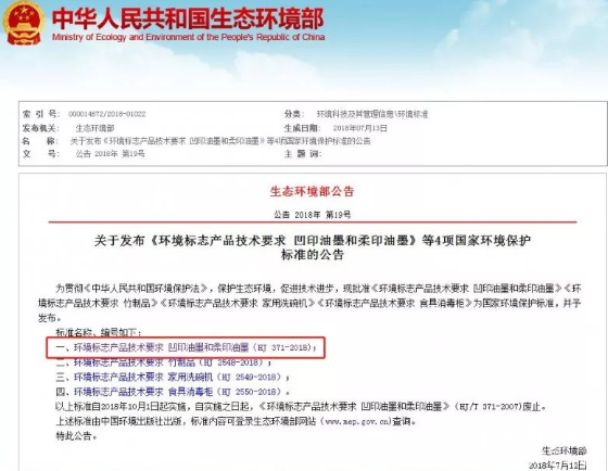 自實施之日起,《環(huán)境標志產(chǎn)品技術(shù)要求 凹印油墨和柔印油墨》(HJ/T 371-2007)廢止。