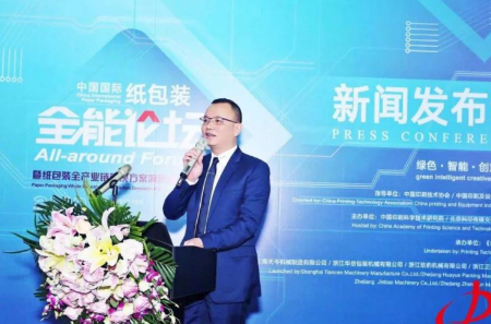 緊接著,蔣元雷先生代表發(fā)起單位中德集團(tuán)發(fā)表講話。本屆全印展,中德集團(tuán)各子公司(上海天岑、浙江華岳、浙江勁豹、浙江正潤(rùn)以及瑞安華威)均展出了最新的創(chuàng)新產(chǎn)品,這些設(shè)備剛好契合CIPP2019的主題“綠色•智能•創(chuàng)意•互聯(lián)”。蔣元雷先生在發(fā)言中表示,在新的市場(chǎng)形勢(shì)下,如何盡快追趕世界先進(jìn)水平,縮小因思想觀念、技術(shù)瓶頸乃至企業(yè)管理諸多因素形成的差距,成為所有印刷人目前的重要課題。要想為這個(gè)課題提交一份符合市場(chǎng)規(guī)律、科學(xué)的答卷,不能單憑設(shè)備制造商的一己之力,而是需要一個(gè)更加強(qiáng)大有力的平臺(tái)。CIPP就是這樣一個(gè)平臺(tái)。在這個(gè)平臺(tái)上,我們需要集合全國(guó)乃至世界范圍內(nèi)經(jīng)驗(yàn)豐富的、有獨(dú)到創(chuàng)意的印刷包裝實(shí)踐者們和專家學(xué)者們,共同深入思考、廣泛溝通、積極摸索,走出一條更理智、更明確、更便捷而又符合印刷包裝企業(yè)長(zhǎng)足發(fā)展的道路。
